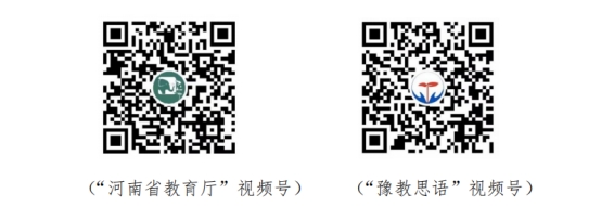 收看渠道:扫码关注“河南省教育厅”视频号或“豫教思语”视频号,点击屏幕上“预约”待直播开始即可观看。