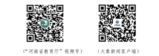 扫码关注“河南省教育厅”视频号或大象新闻客户端,点击屏幕上“预约”,待直播开始即可观看。