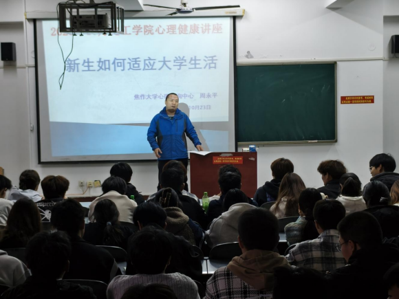 为了切实提升新生心理健康水平,帮助新生快速融入大学生活,平稳度过适应期,在 2025 年心理健康教育宣传周来临之际,化工学院于 10 月 23 日下午成功举办《新生如何适应大学生活》主题心理健康讲座。本次讲座由化工学院副院长王拥军主持,由我校心理咨询中心周永平老师主讲,学院 2025 级新生到场聆听,现场氛围热烈,反响良好。